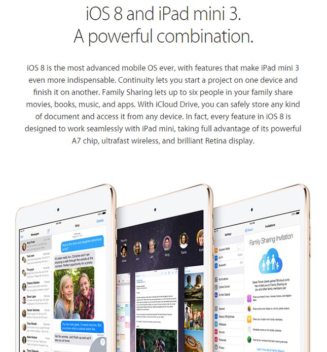 Experience 360 degree view and photo gallery. Check the reviews, specs, color(space gray/silver/gold), release date and other recommended tablets in apple ipad mini 3 wifi is a 128gb of storage, have fingerprint identity sensor, 7.9inch(2048 x 1536), ios 8 of processor. Ipad mini 3 tech specs. Check apple ipad mini 3 (wifi+16gb) specs and reviews.